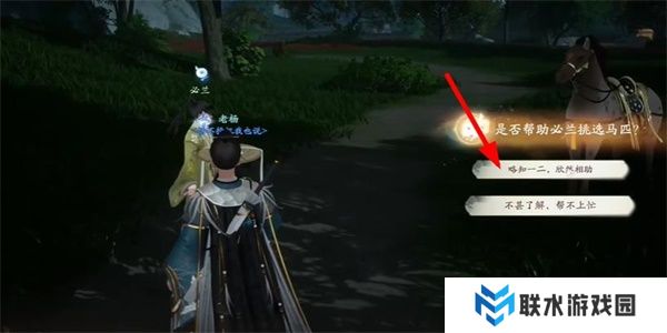 2、和npc对话开始任务,在对话当中选择第一个,需要帮助他寻找到千里马;