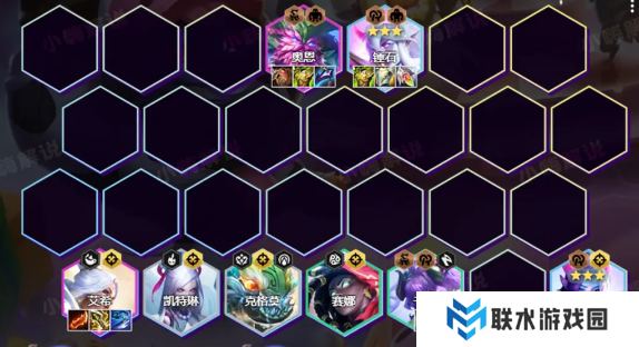 1、阵容组成:凯特琳、克罗莫、千珏、赛娜、锤石、厄斐琉斯、锤石、奥恩