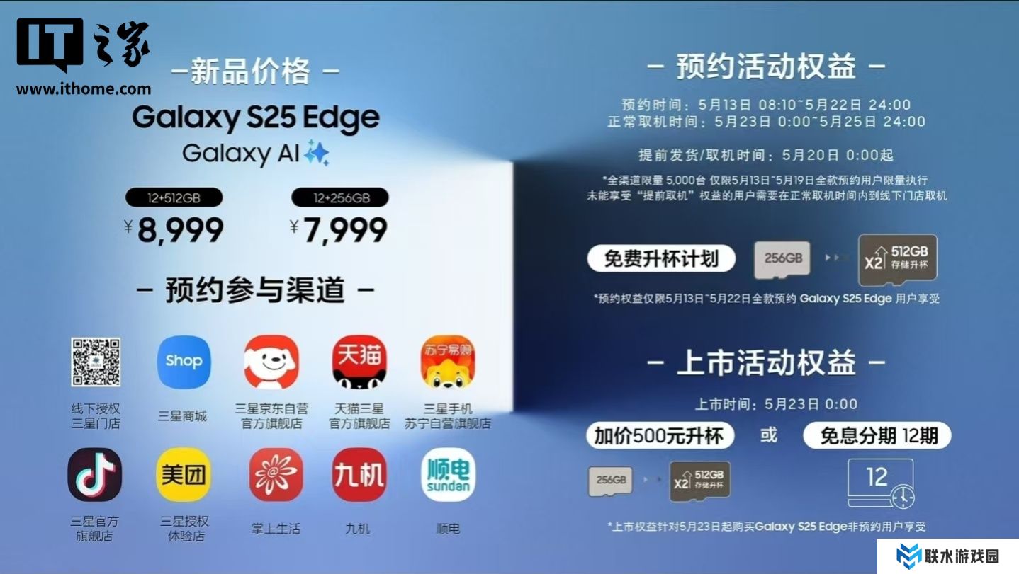 三星 Galaxy S25 Edge 国行售价7999 元起,5 月 23 日正式上市。