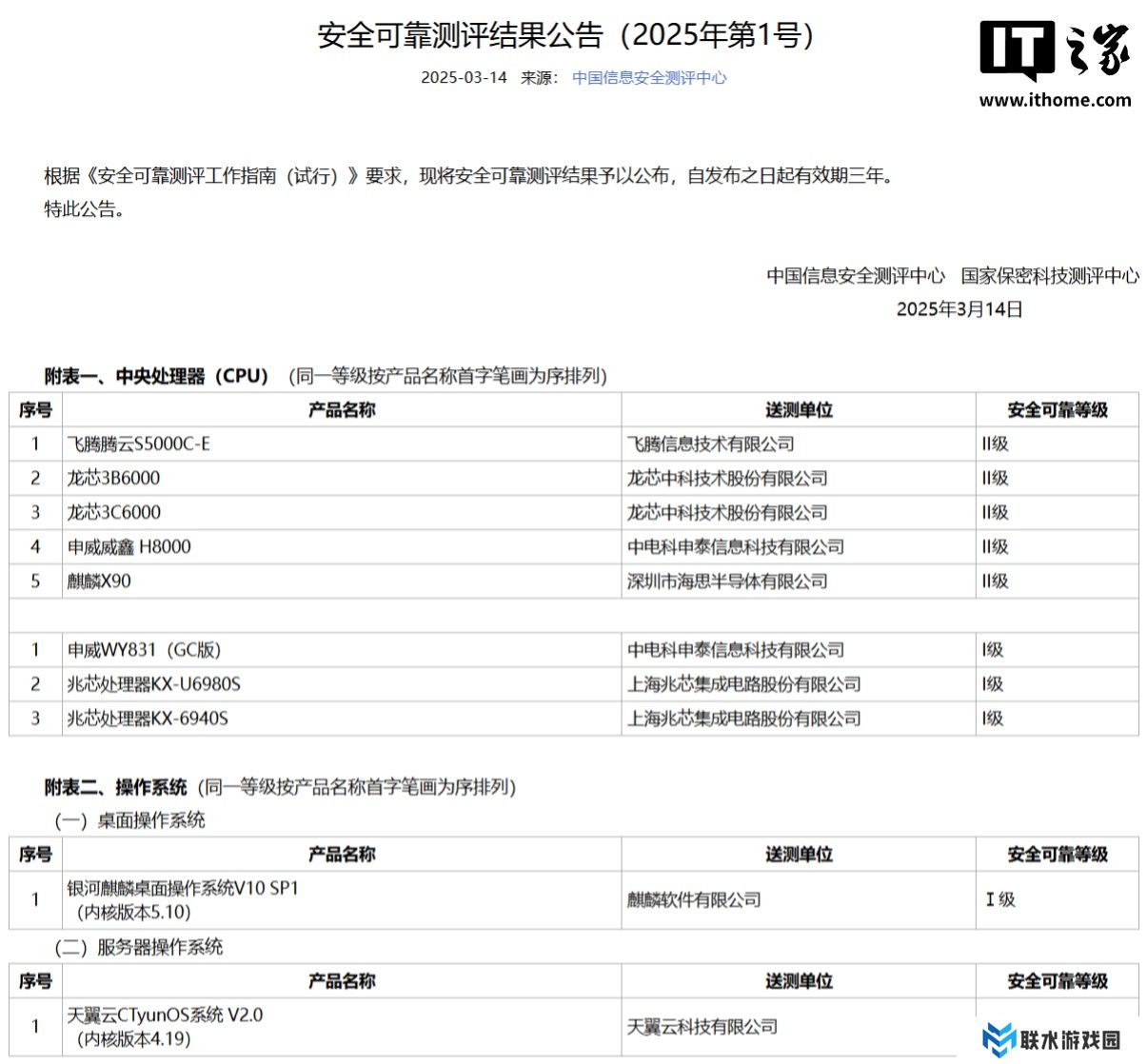 据本站此前报道,中国信息安全评测中心今年 3 月 14 日发布了安全可靠测评结果公告(2025 年第 1 号),其中海思麒麟 X90 处理器安全可靠等级评测结果为 II 级。