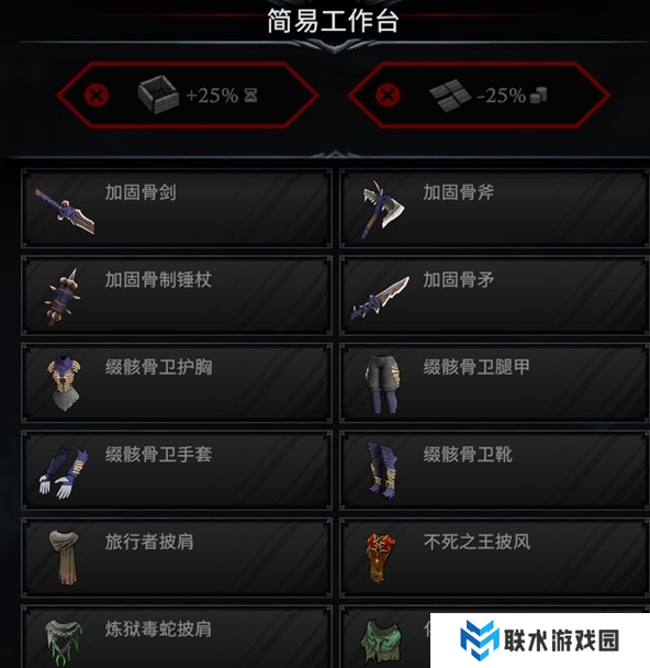 放置建筑“简易工作台”即可解锁“加固”骨制系列武器的制作权限。