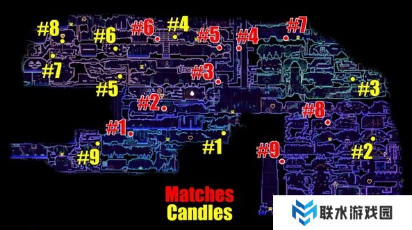 沿着地图左上方的移动瀑布向上行驶。您将到达一个由墙壁和地板交替组成的迷宫。火柴可以在左下方的箱子中找到。