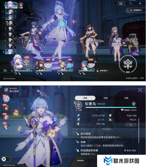 2、进入战斗实况后出来的是素裳,大家需要先把角色调整到知更鸟,然后等待10秒,听知更鸟把歌唱完即可完成成就。