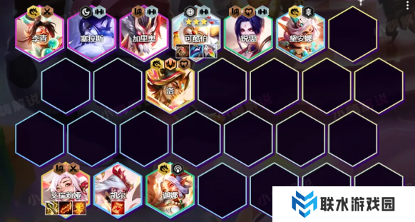1、阵容组成:可酷伯、锐雯、风女、黛安娜、塞拉斯、加里奥、洛、刀妹