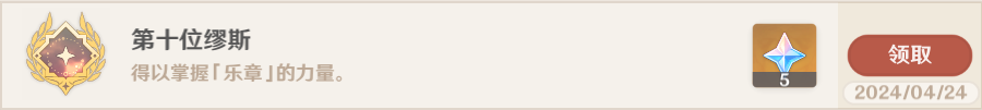 「乐章的恩赏」:共6个「乐章」,共120原石