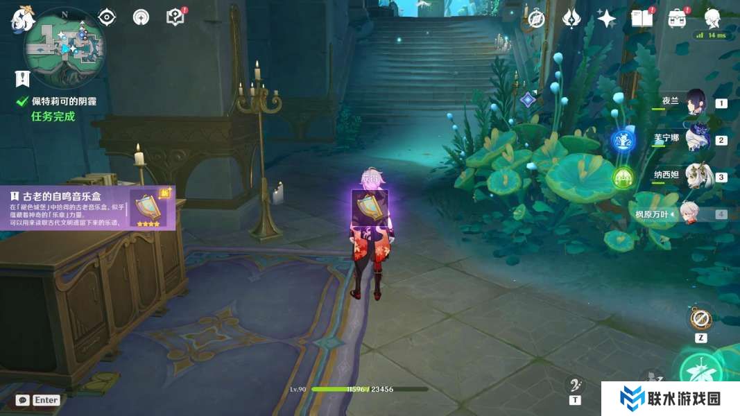 7、在这里和与小呜斯对话,装载音乐盒,获得「乐章的恩赏」: