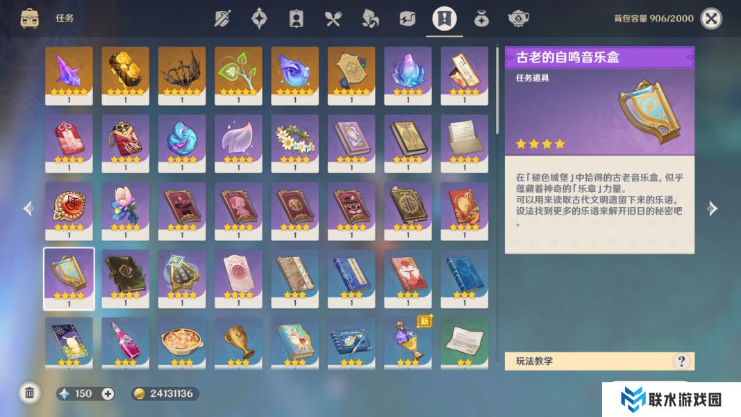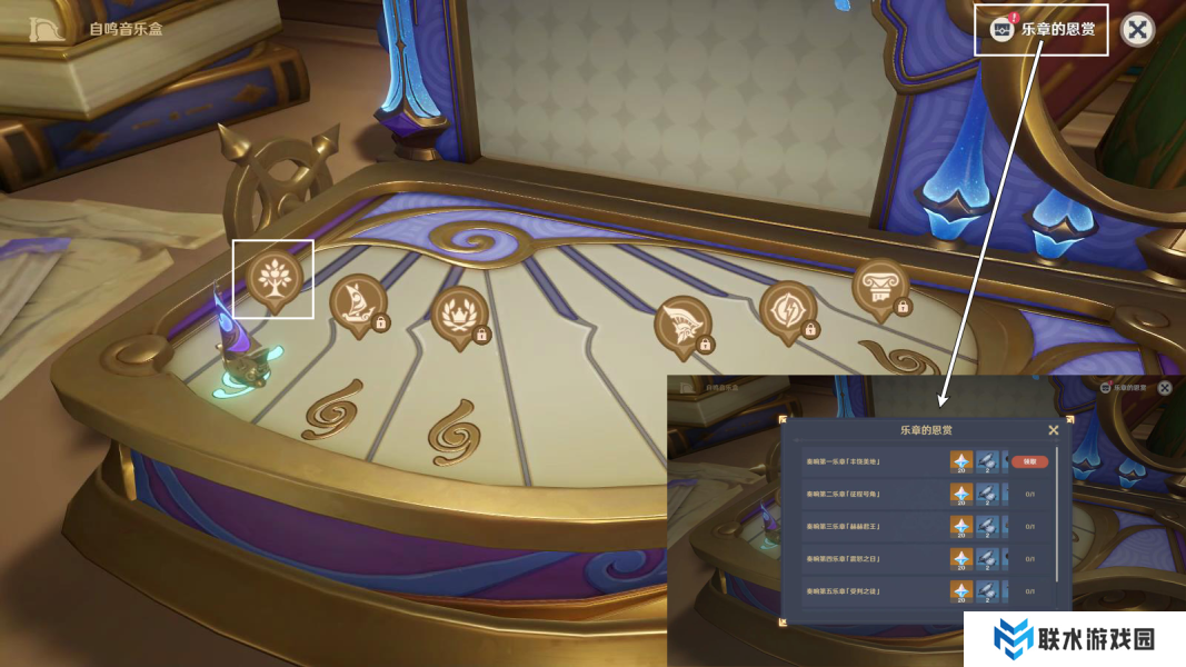*「古来的自鸣音乐盒」:在背包-任务栏;使用即可打开「乐章的恩赏」