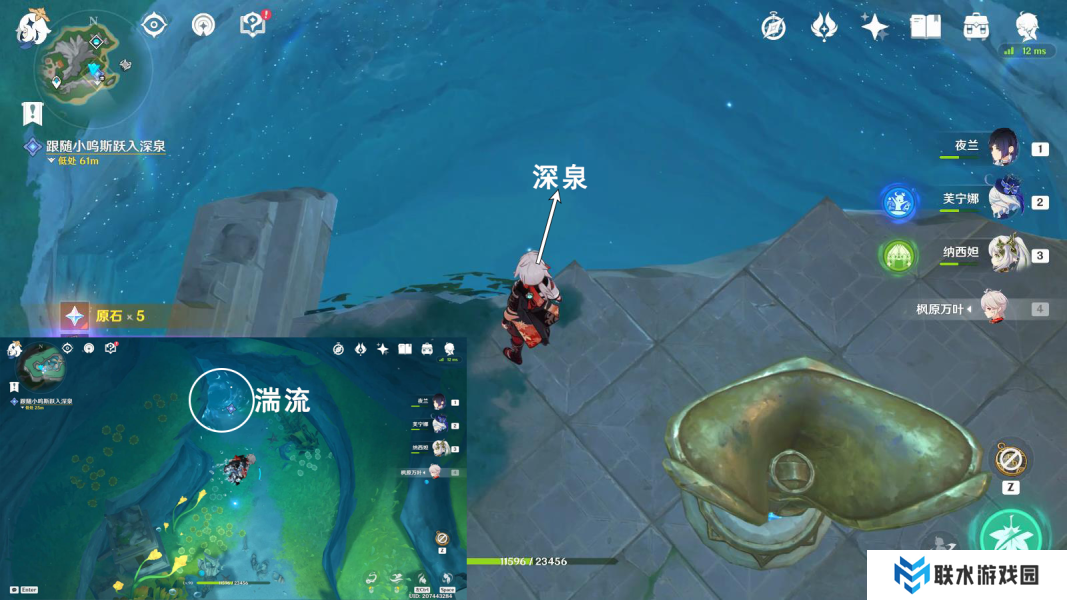 4、然后需要跟随小呜斯下潜水底,进入湍流;