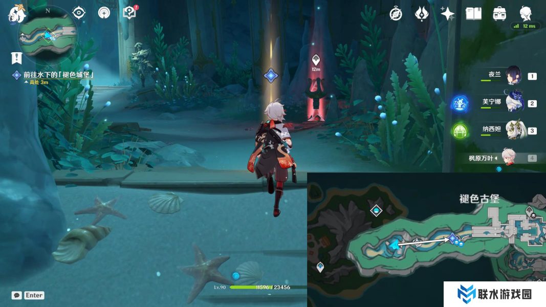 5、进入水中可以前往水下的「褪色城堡」,之后往地图的东方向游出水面,开启锚点;