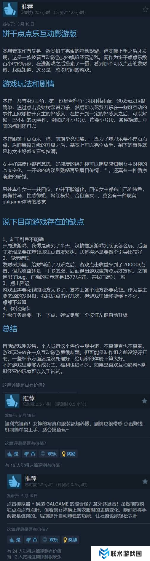 部分给出评价的玩家表示,《我被女神盯上了!》结合了养成玩法,互动性与真实性很强,角色们的**很养眼,是一款能够消磨时间的佳作,但游戏也有着新手引导不明确、点击延迟等问题,仍需在后续进行优化。