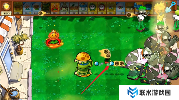 在冷却时间结束后装载毁灭菇炮弹,发射后对区域内的僵尸造成巨大伤害,留下的弹坑在一段时间内无法再种植植物。
