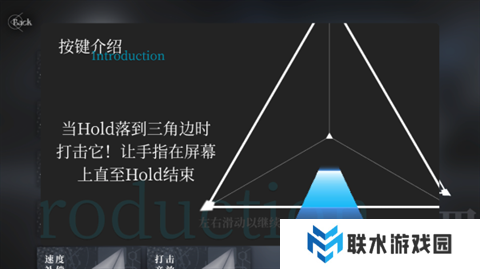 4、Hold按键:当Hold落到三角边时打击它。让手指在屏幕上直至Hold结束。