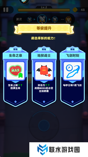 1、闯关的过程中没当角色等级提升时玩家们就能够为角色选择不同的技能。