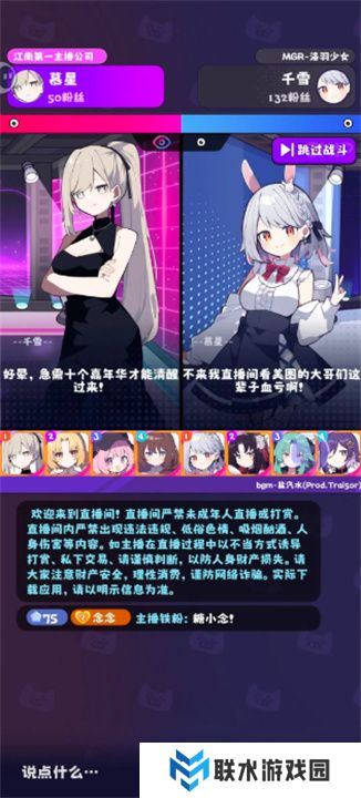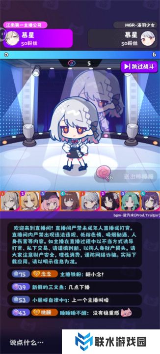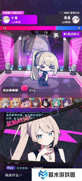 江南第一主播公司~在这个二次元风格的趣味经营手游中,你将化身为“江南第一深情祖师爷”,这位曾风靡一时的顶级主播,决心打造属于自己的传奇公司。经过两年半的风云际会,你终于下定决心,带领一群潜力无穷的美少女主播,走向直播圈的巅峰。在游戏中,你将亲手培养这些天赋异禀的美少女,帮助她们不断提升魅力与实力,让她们的名字响彻整个网络。一步步扩展公司,签约新人,挑战各种商业奇遇,最终将你的直播帝国推向江南地区的头号宝座!