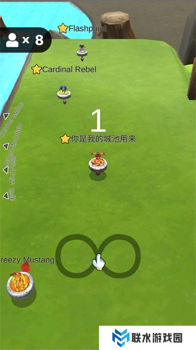 2、根据游戏提示滑动屏幕,让陀螺沿8字形路线旋转,这样能更有效地在赛场中存活下来。