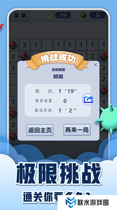 4、调整完地雷数量后,点击“确认”,返回主界面开始自定义挑战。