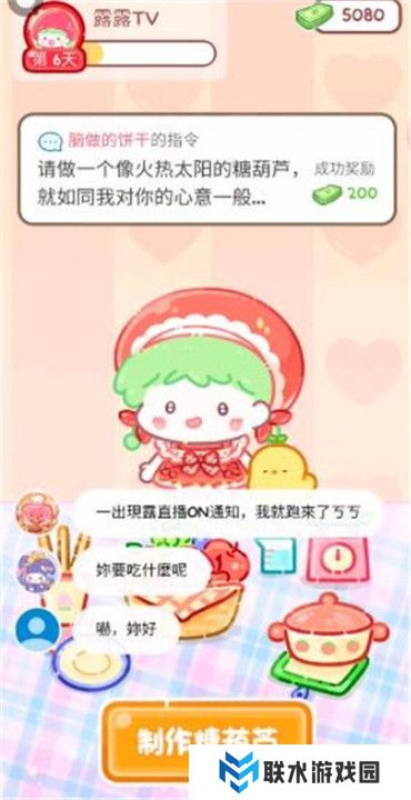 7、糖葫芦做好后开启直播,与观众分享你的美味佳作。吃掉糖葫芦后你将获得金币奖励,直播中还会有一些随机事件,选择接受或忽略它们,体验不同的游戏剧情。