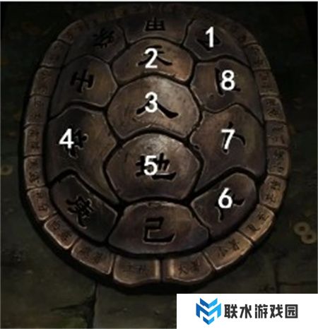 这个谜题略有难度,首先要根据提示选择最大小高低,按照平-上-下-上的顺序选择,最终获取缺失的龟壳部分和一枚花钱。