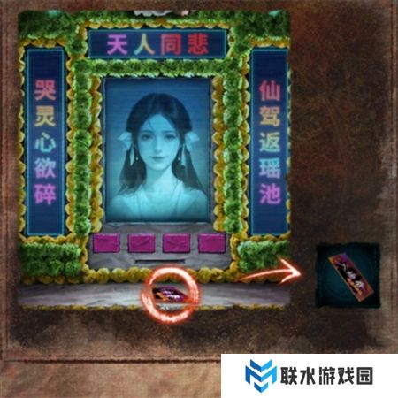 将女主的照片放入电子灵牌,调整挽联内容,得到入场券。