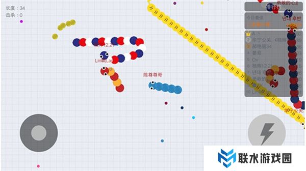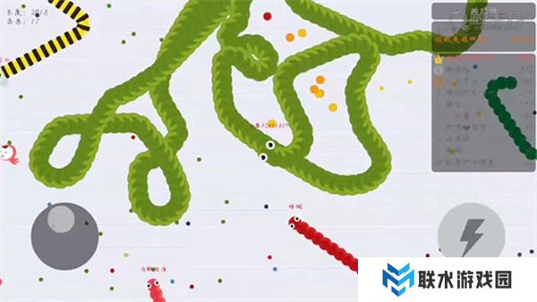 在游戏界面中,左手操作圈用于移动和改变方向,右手边则控制加速技能的释放和停止。注意,加速技能的释放会消耗少量小蛇的长度,需谨慎使用。