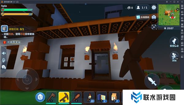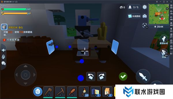 创建好世界后,系统会给你一套木制工具和基础道具作为起始装备。
