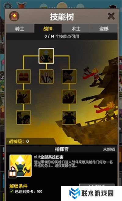 2. 战神:这个天赋强化的是周围召唤英雄的能力,虽然强大,但前期需要大量技能点,可能会感觉有些不够用,因此在游戏初期不太推荐重点发展。