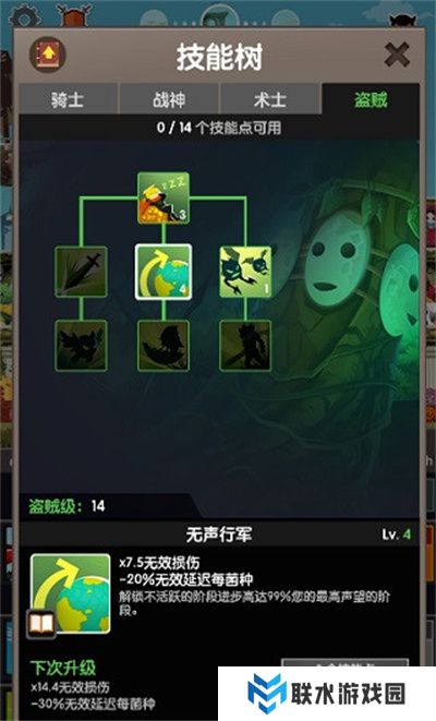 6. 每个加点选择都有其优势。如果你喜欢骑士或战神,建议先把盗贼的无声行军技能点满,这样可以让你更快速地发展,并轻松到达更高楼层。