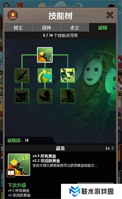 4. 盗贼:这是最轻松的加点方式,一技能可以增加黄金,二技能则能够提升无声行军,使游戏变得更像放置类游戏。适合那些希望游戏时间更少、操作更轻松的玩家。