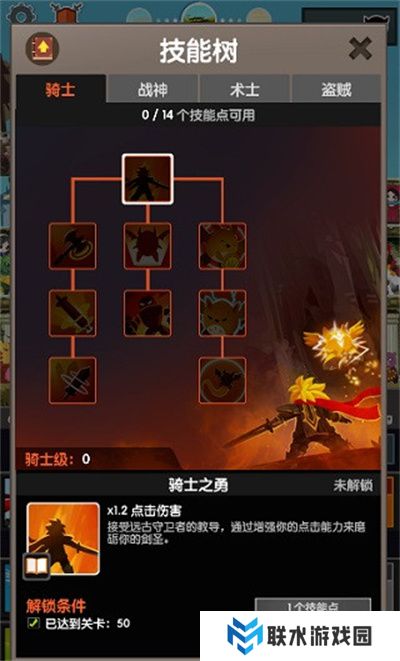 1. 骑士:这个技能树适合喜欢频繁点击的玩家,主要增强点击攻击力。如果你在线时间较长,喜欢频繁点击敌人,这个天赋非常适合你。