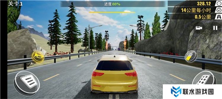 加速前进:进入游戏后,点击右侧油门即可开始极速狂飙,体验驾驶快感。
