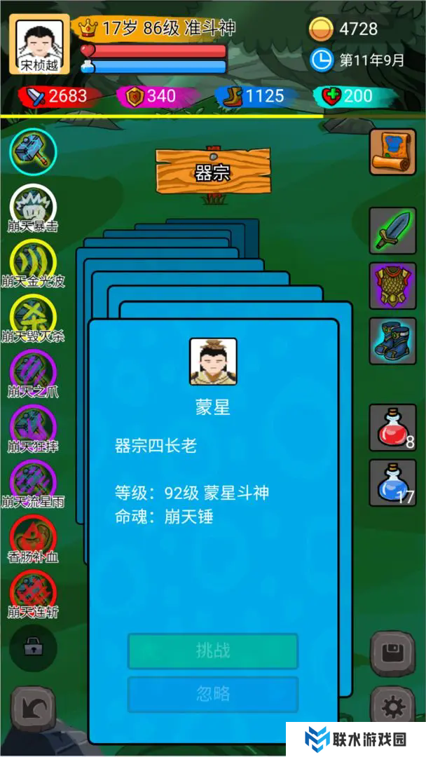 3、30级之后,前往森林11刷锤子的暴击,兔子尝试刷困阵(困难)。建议先达到30多级再去,否则可能很难通过,或先用金光波和缠绕代替,等40级后再回来。