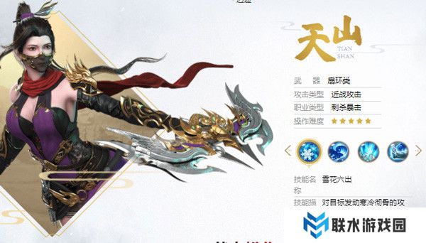 特点:天山的单体技能伤害极高,主打冰属性,能够施展隐身、封穴和瞬移等技能,打击敌人出其不意。