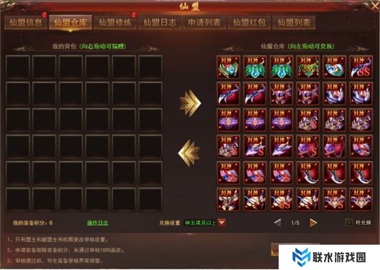 仙盟功能:加入仙盟后,玩家可以参与仙盟修炼、进行装备存取,并且可以发送红包给其他盟友。