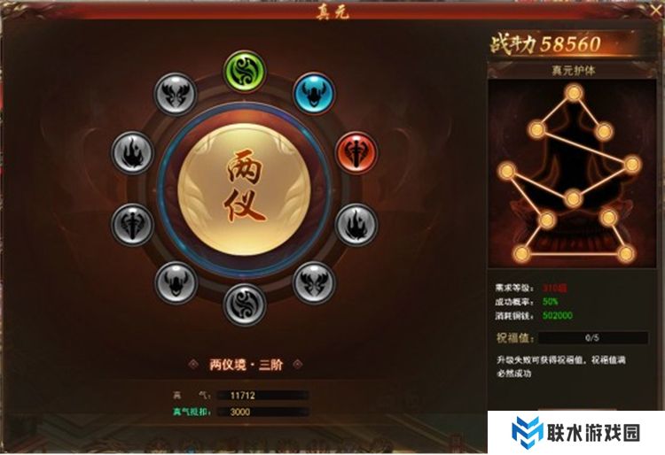 升级概率:真元的升级有一定的成功概率,若升级失败,则会获得祝福值。祝福值满后,升级必定成功。