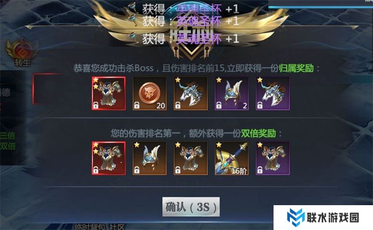 归属奖励:伤害排名前15的玩家会获得归属奖励,排名第1的玩家将获得三倍奖励,第2至第4名获得双倍奖励。