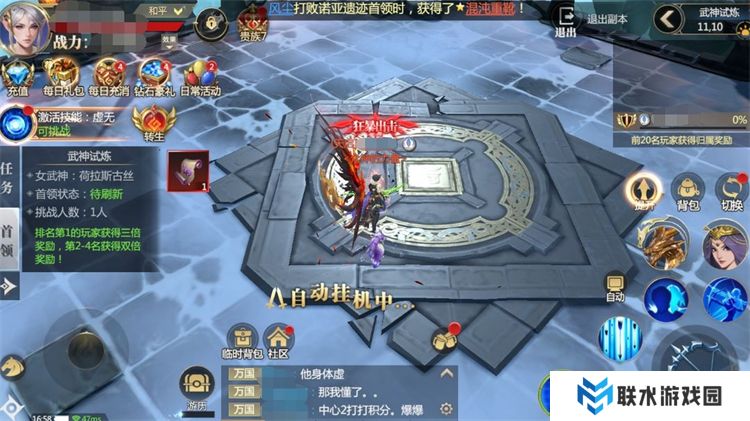 入口:点击【首领】→右侧栏第四个【武神试炼】。