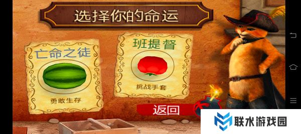 1. 打开水果忍者穿靴子的猫,选择你喜欢的游戏模式。