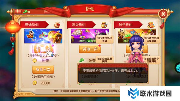 4、前往“祈仙”界面,使用基础召唤招募战斗助力。