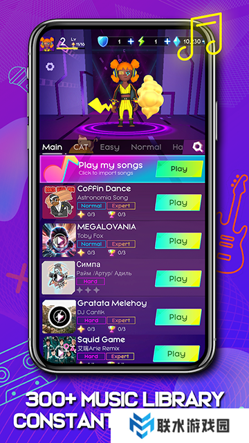 1、游戏给予多种音乐内容,玩家可以根据自己的兴趣快速选择并挑战。