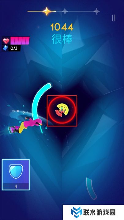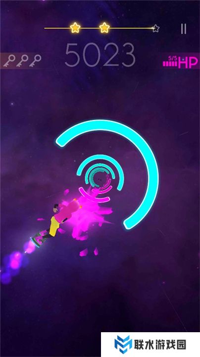 5、遇到带有颜色光环的障碍时,注意颜色会发生变化,击打的颜色就是光环的颜色。
