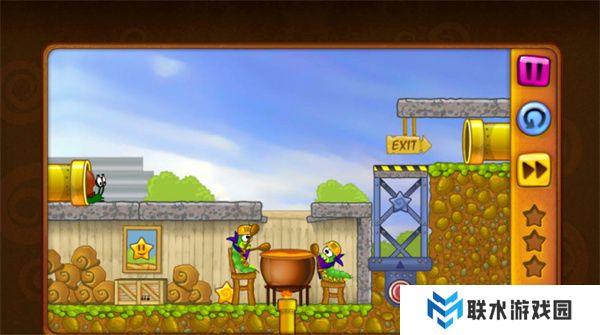 游戏的关卡设计非常巧妙,每个关卡都有不同的障碍和谜题等着你去破解。最有意思的是,每个关卡中都藏着三颗星星,虽然通关后你可能觉得任务完成了,但想要获得更高的评分,星星的收集可是必不可少的。更具挑战性的是,很多星星并不是直接摆在你面前的,而是需要通过巧妙的操作或触发某些机关才能得到,这对于玩家的观察力和动手能力都是一场考验。