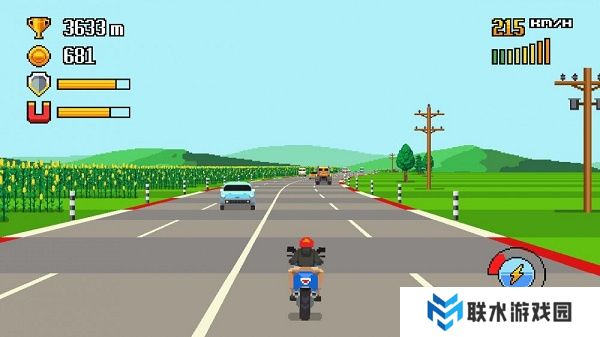 游戏保留了紧张刺激的街机竞速玩法,玩家需要在高速公路上灵活躲避障碍物并收集金币,挑战更高的分数。这种经典的竞速模式让玩家感受到怀旧的乐趣。