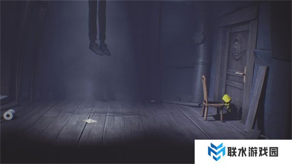进入房间后,你会看到令人不寒而栗的一双大腿,随后需要将椅子拉倒并放在门边,通过跳跃打**间的门。