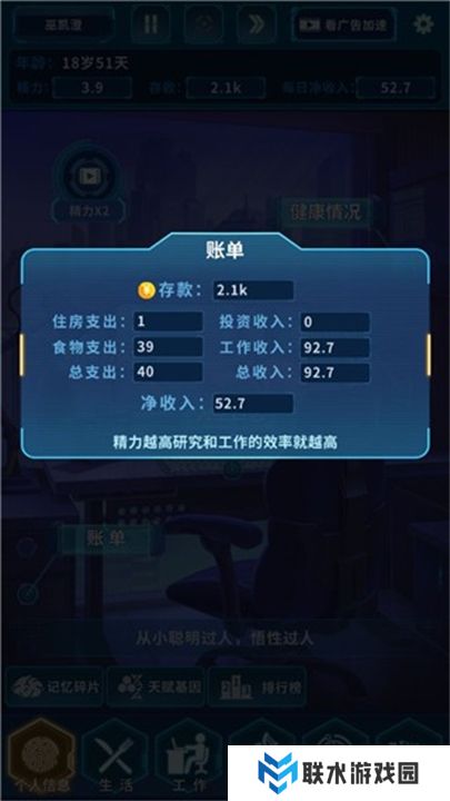 2、游戏中玩家需要合理分配每日的时间,无论选择专注工作、研究,还是享受摆烂人生,均由玩家自行决定,这些选择将触发不同的结局和记忆碎片。
