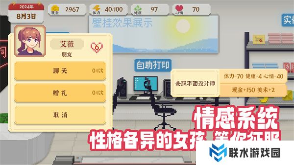 丰富的职业选择:玩家可以自由选择不同的赚钱方式,如务农、打游戏、考公务员或成为UI设计师,每种职业都带来不同的挑战与奖励。