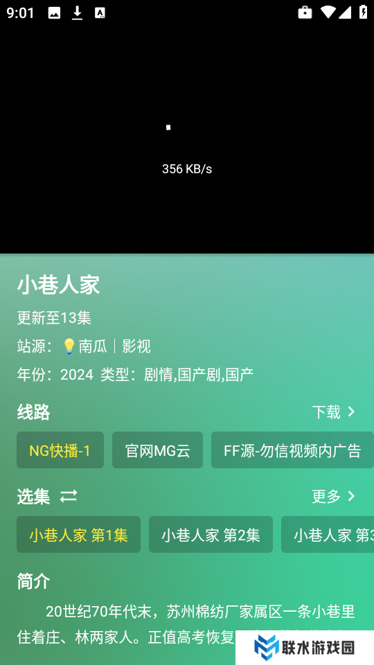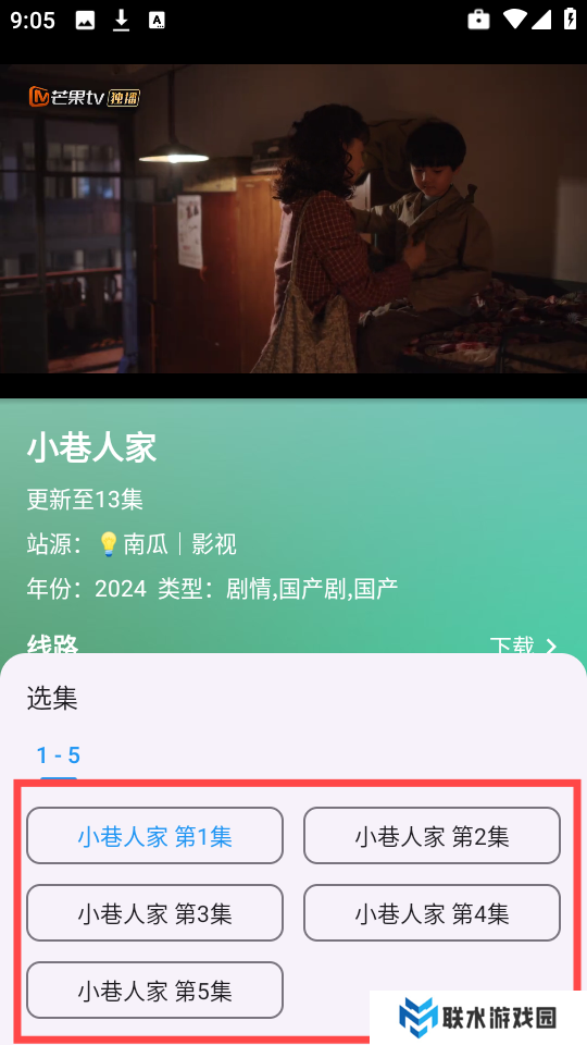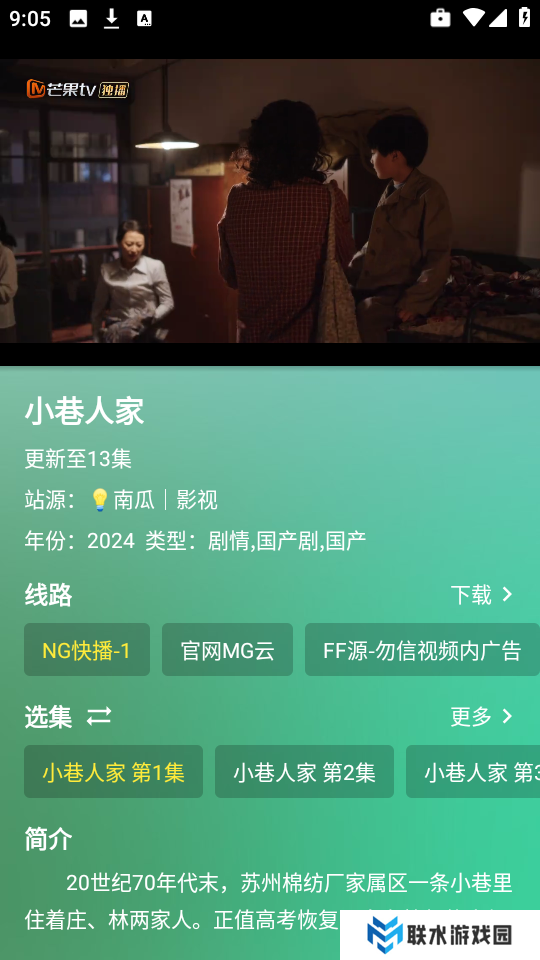 4、选择任意一部影片进行播放,以近期热门的“小巷人家”为例,点击即可开始观看。