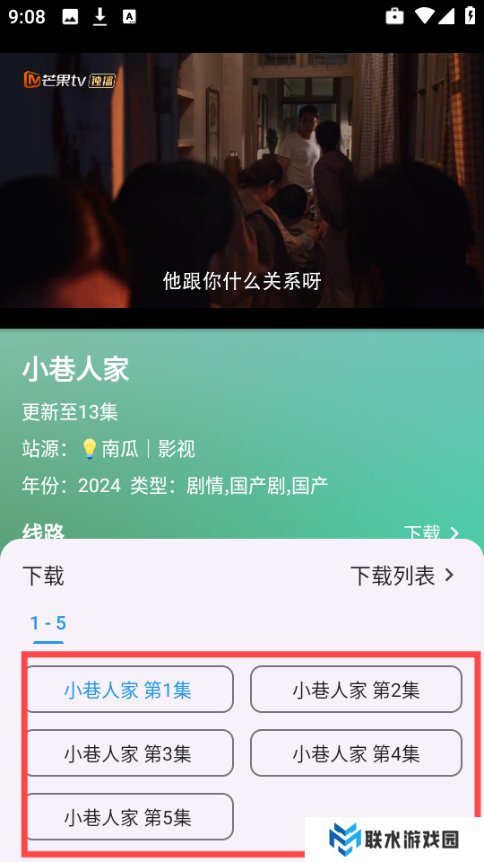 2、以“小巷人家”为例,在播放界面点击“下载”按钮。