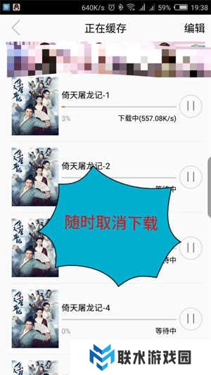 7、在正在缓存界面,可以随时取消正在下载的视频。如图所示