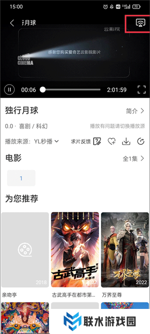 2、轻触播放区域,右上角会出现一个投屏图标,点击它启动投屏功能。