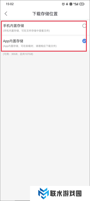 3、默认存储为应用内部空间,如需改为手机内存,请切换至“手机内置存储”选项。